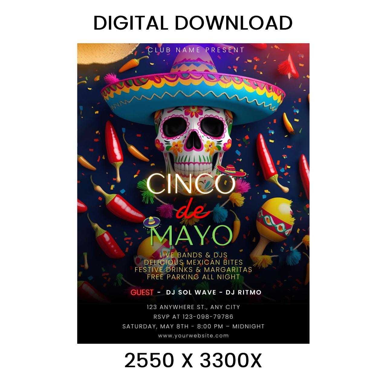 Cinco De Mayo Flyer Template: Editable Mexican Party Poster (Digital Download)