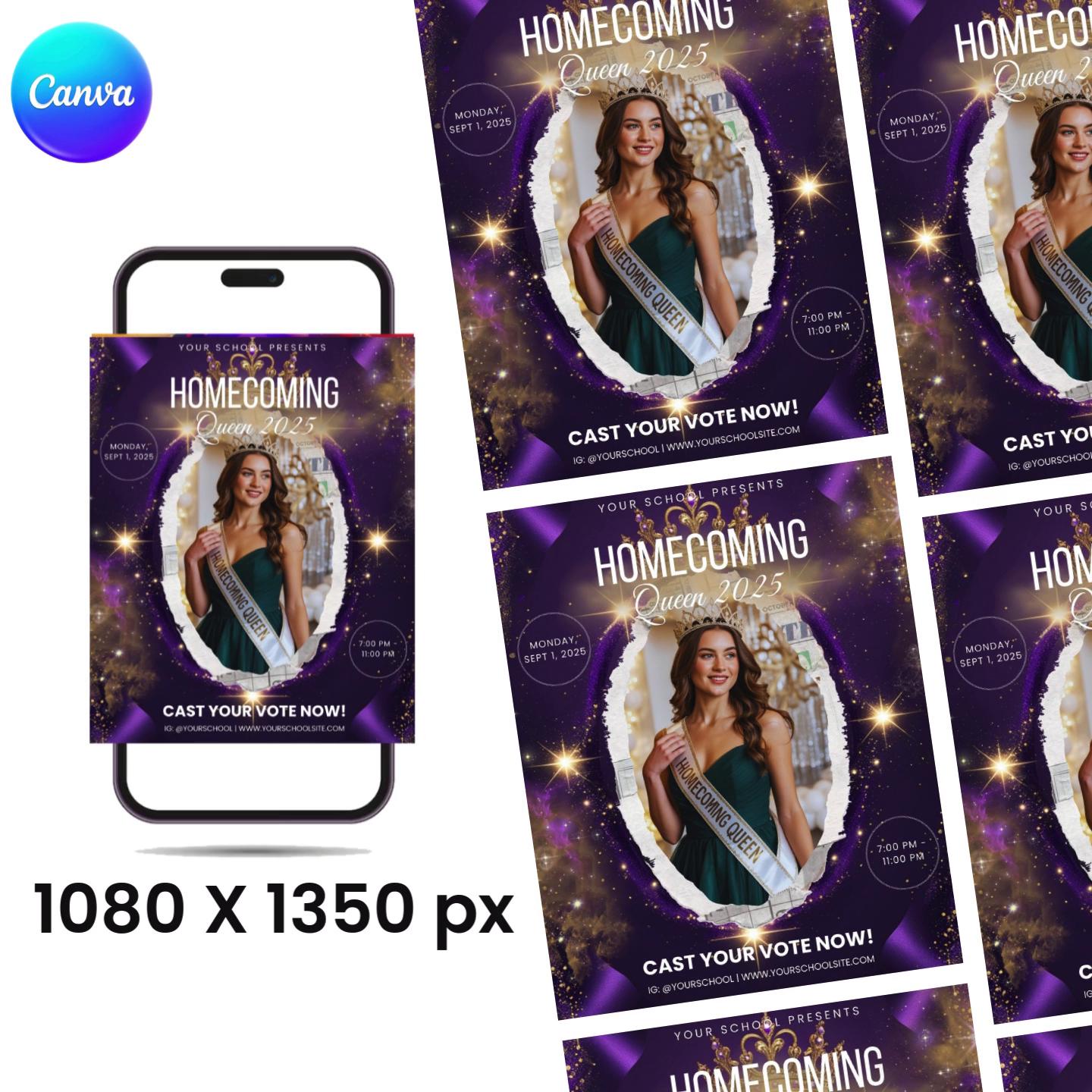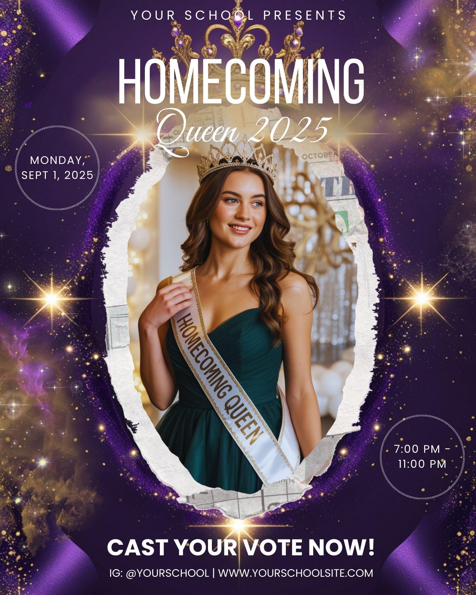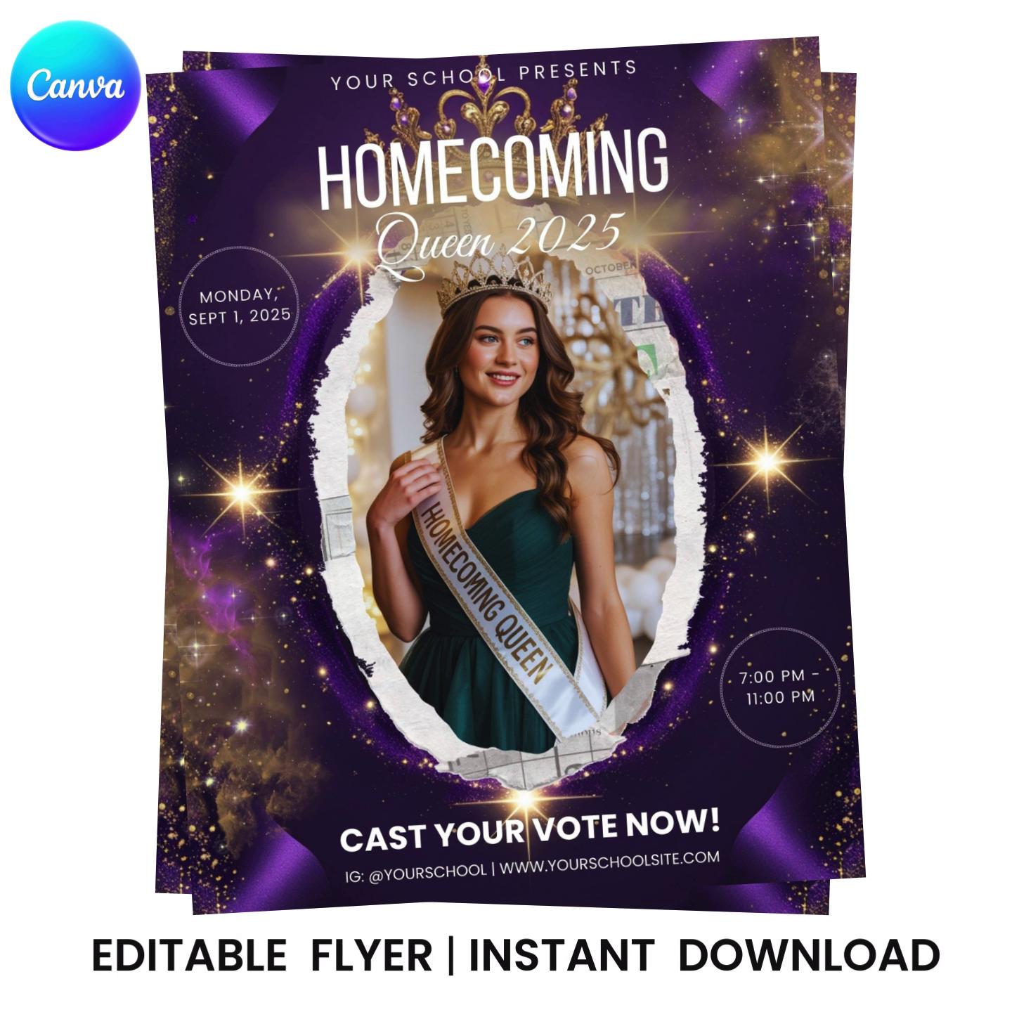 Homecoming Queen Flyer | Editable Canva Template | School Event Flyer | Digital Download