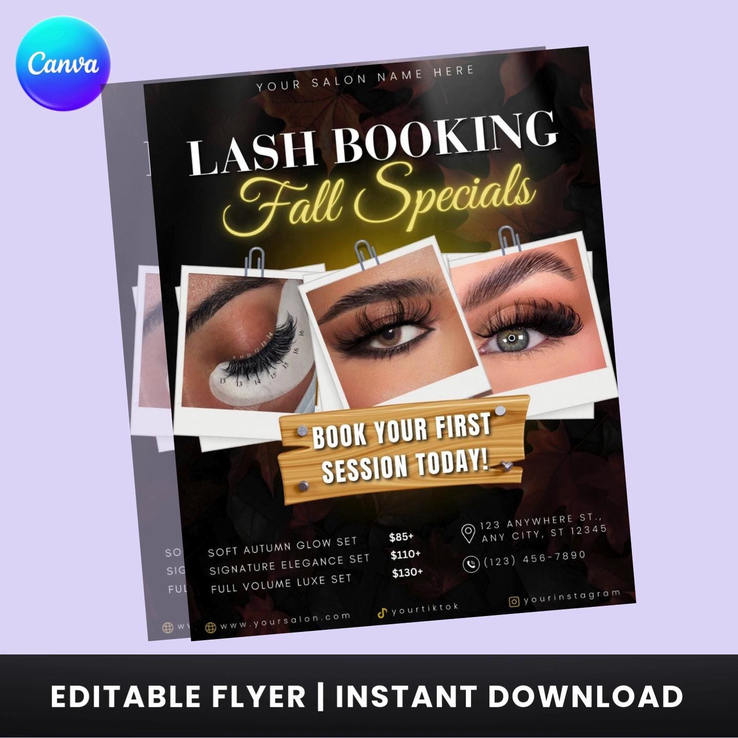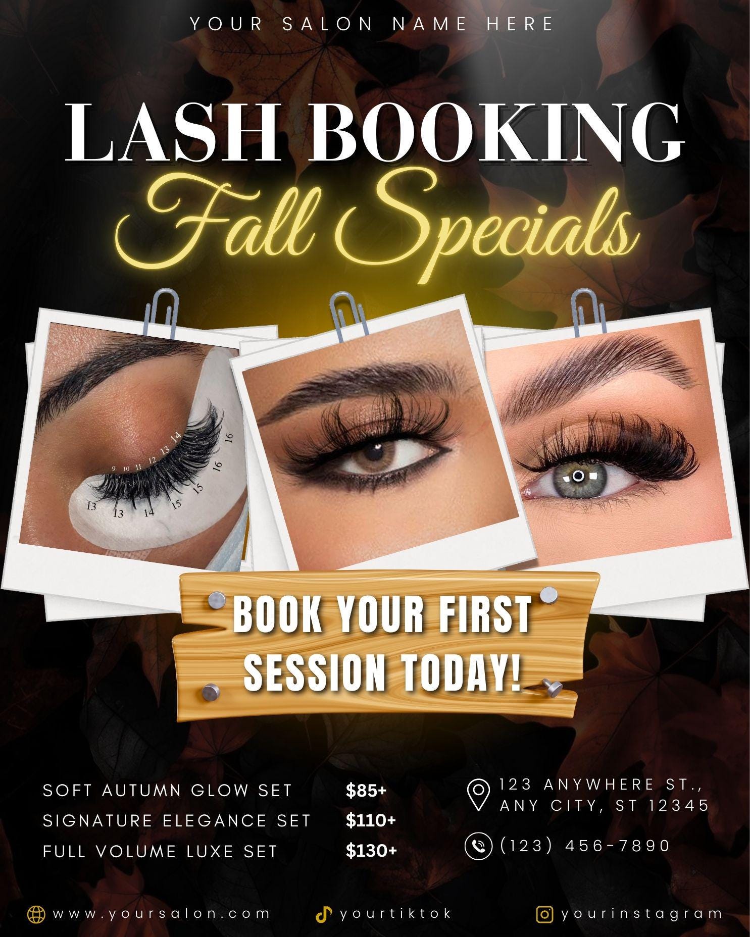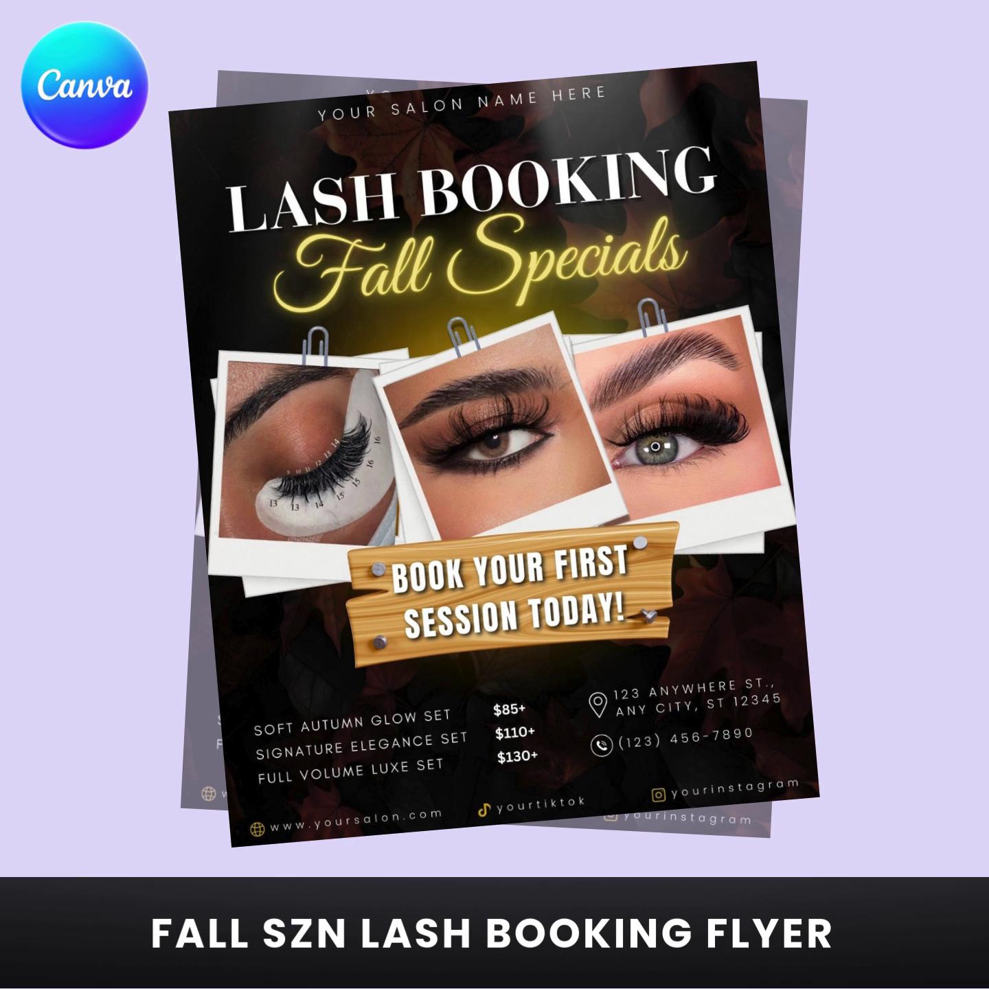 Fall Lash Booking Flyer Template: Editable Canva Design (Digital Download)