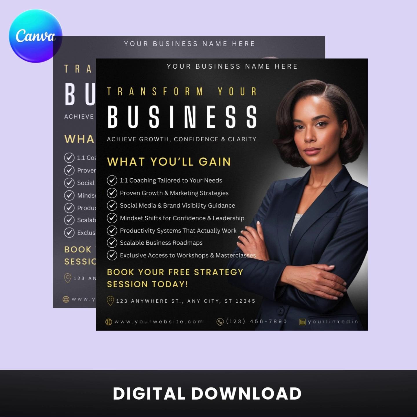 Business Coach Flyer β Editable Canva Template β Consulting & Marketing Promotion β Digital Download