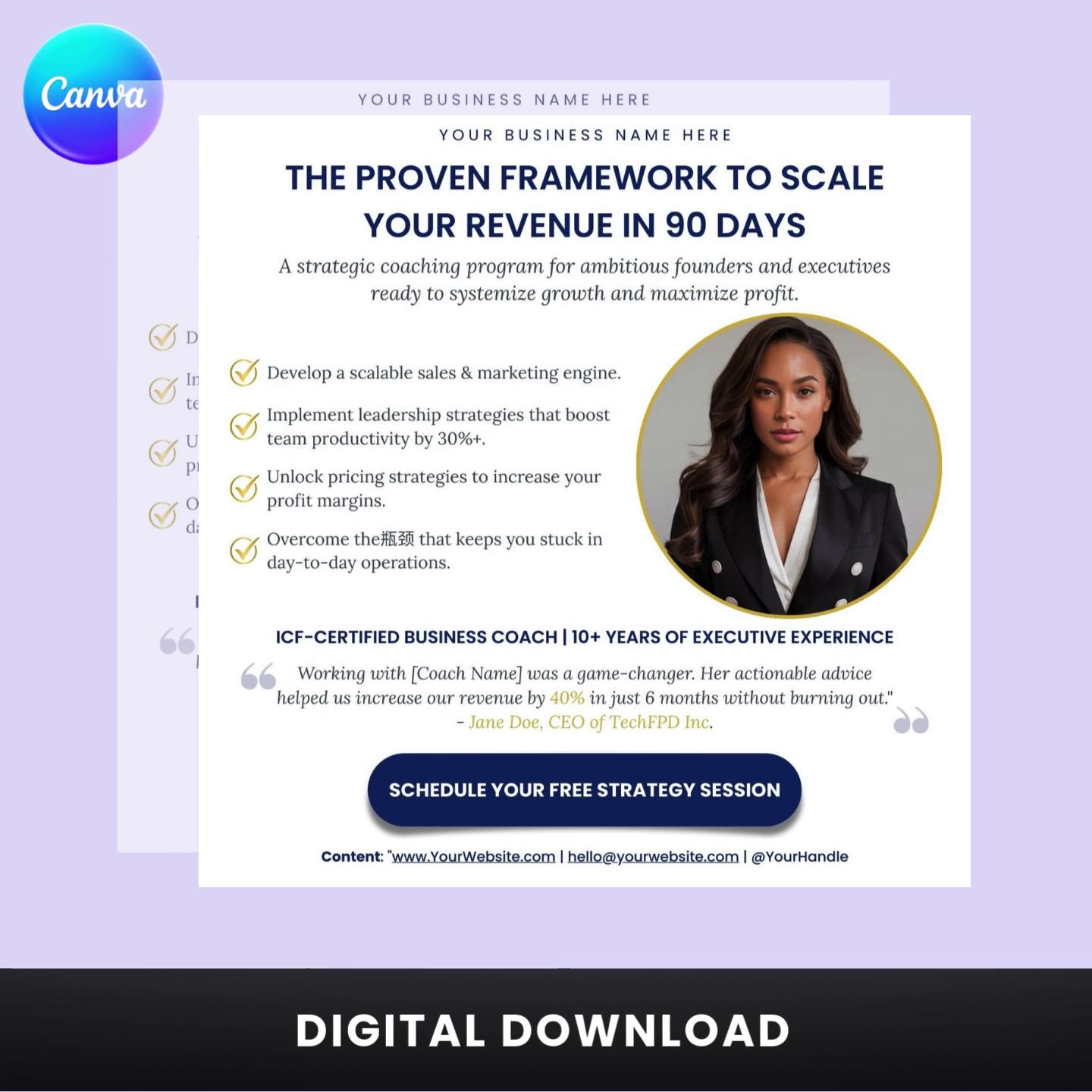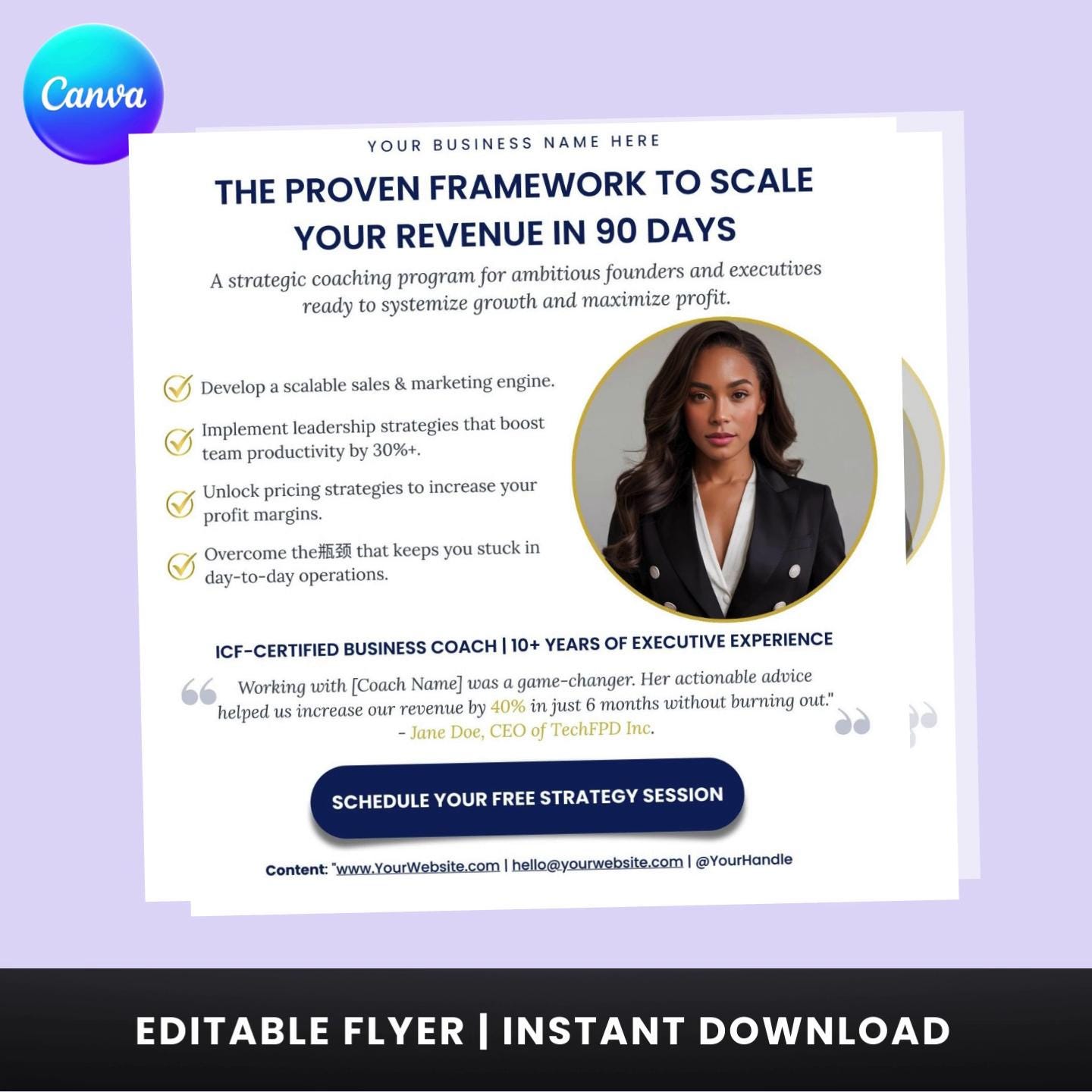 Business Coach Flyer – Editable Canva Template – Consulting & Strategy Promotion – Digital Download