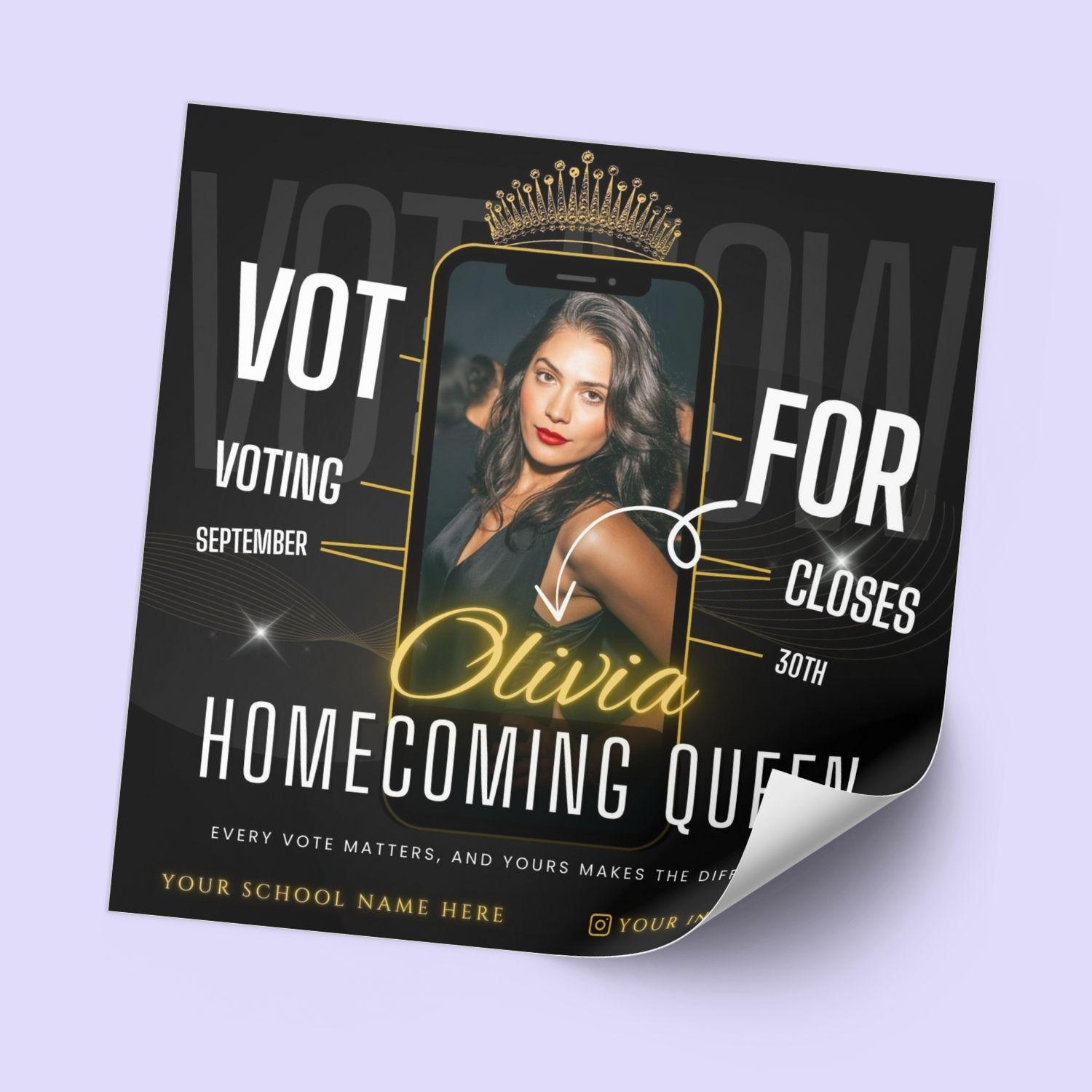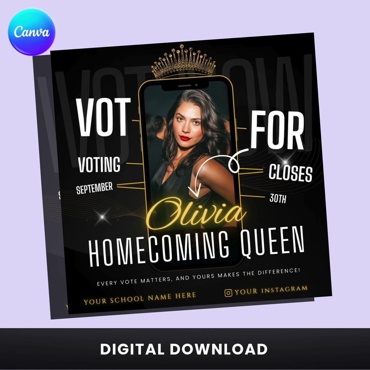 Homecoming Queen Flyer – Editable Canva Template – School Election Campaign – Digital Download