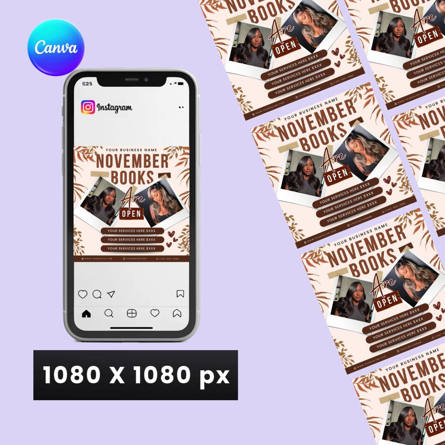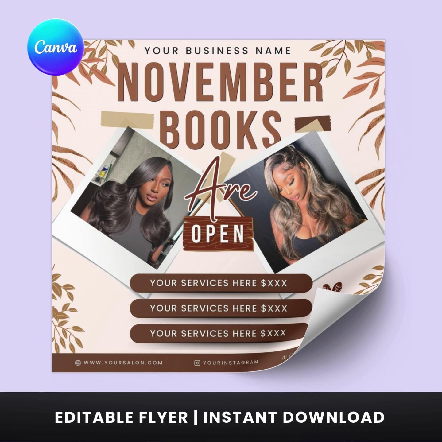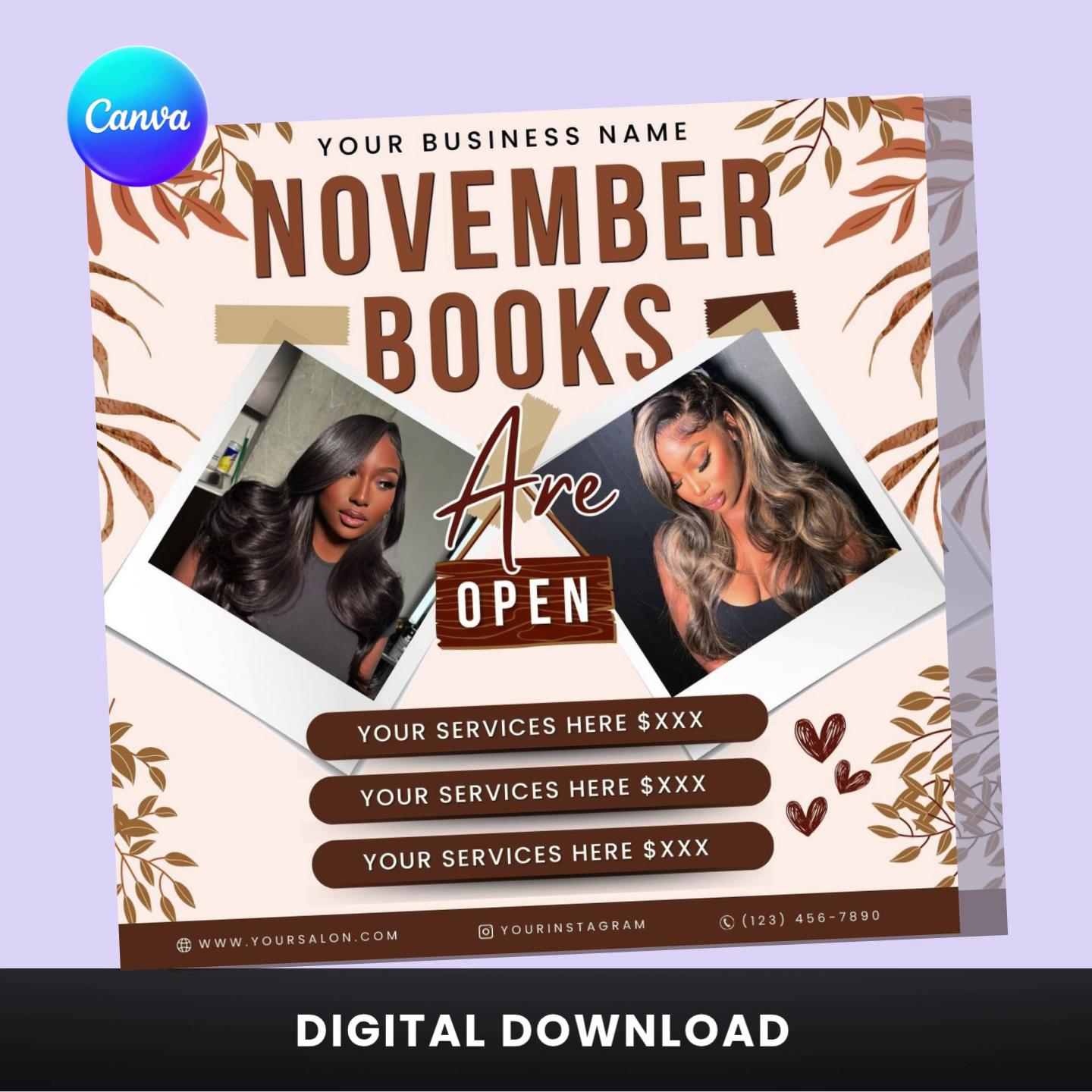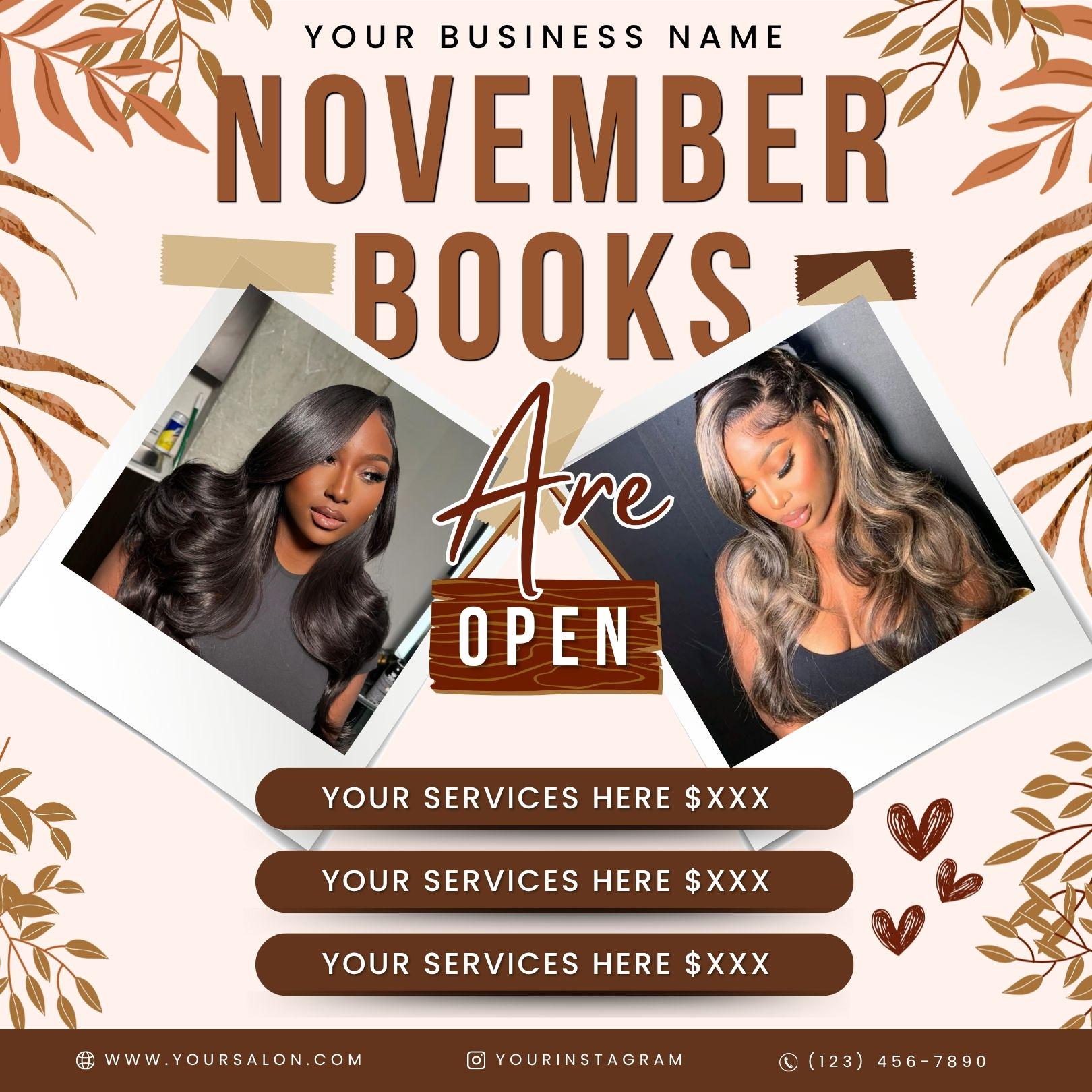 🍁✨ Get ready to fill your November appointments with this stunning Salon Booking Flyer Template! Perfect for hairstylists, lash techs, and beauty professionals who want to promote their seasonal deals in style.