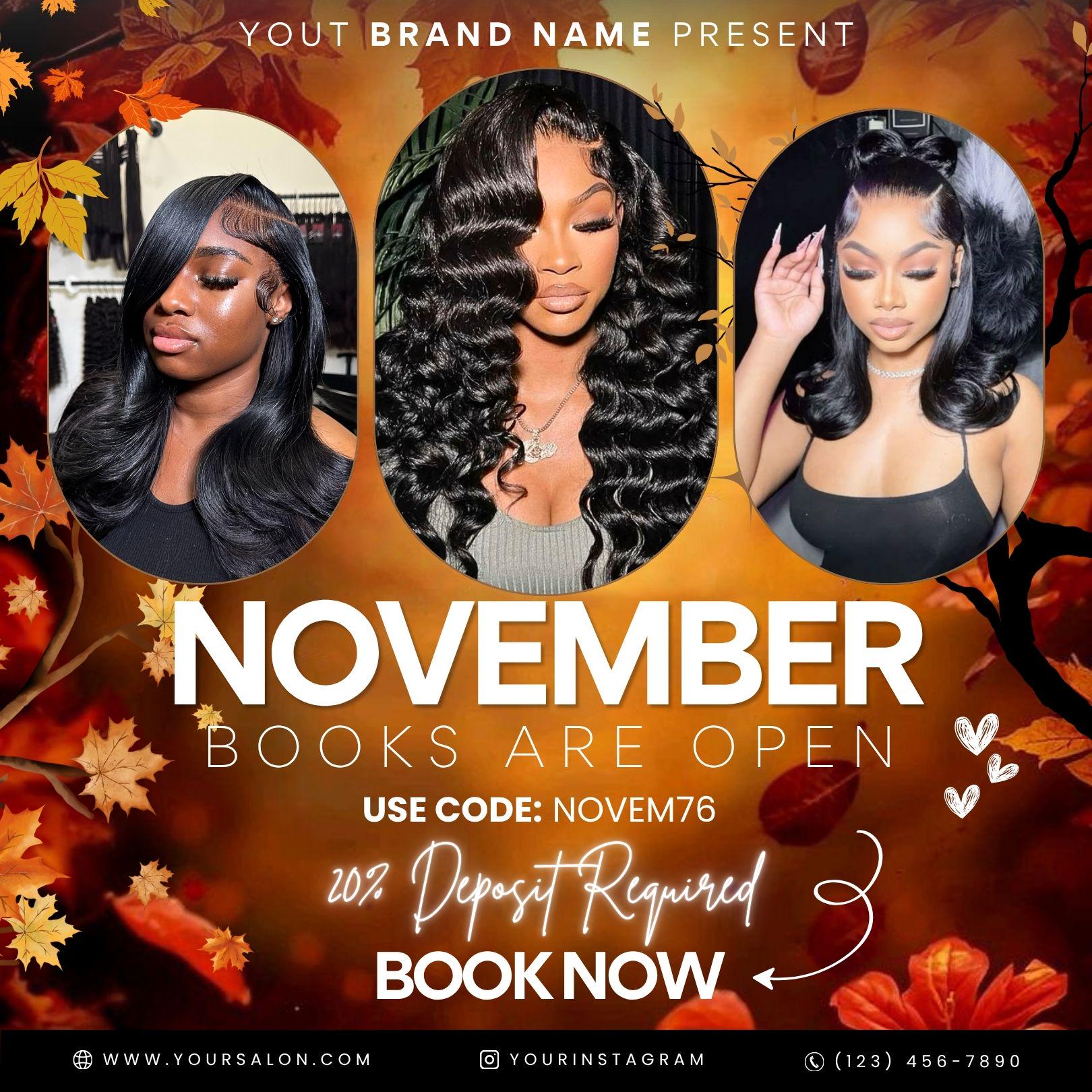 November Salon Booking Flyer β Editable Canva Template (Digital Download)