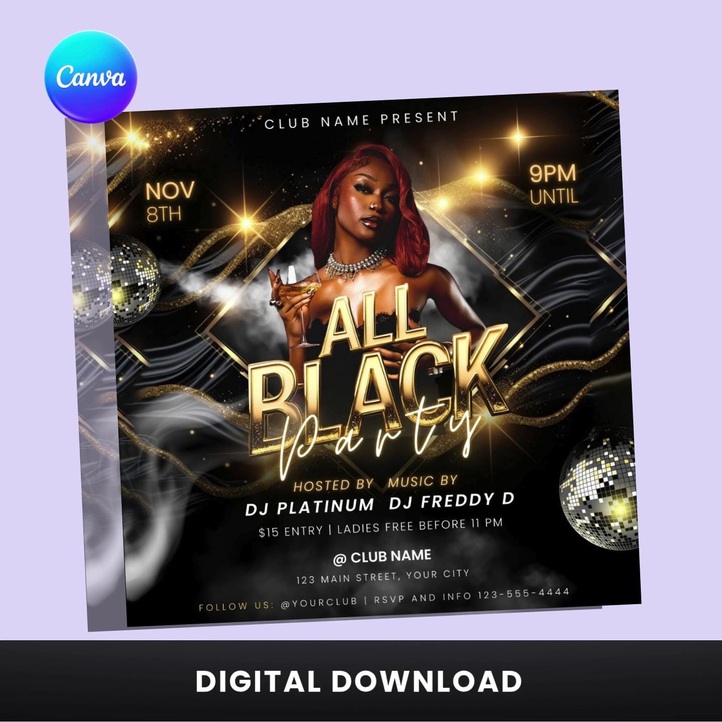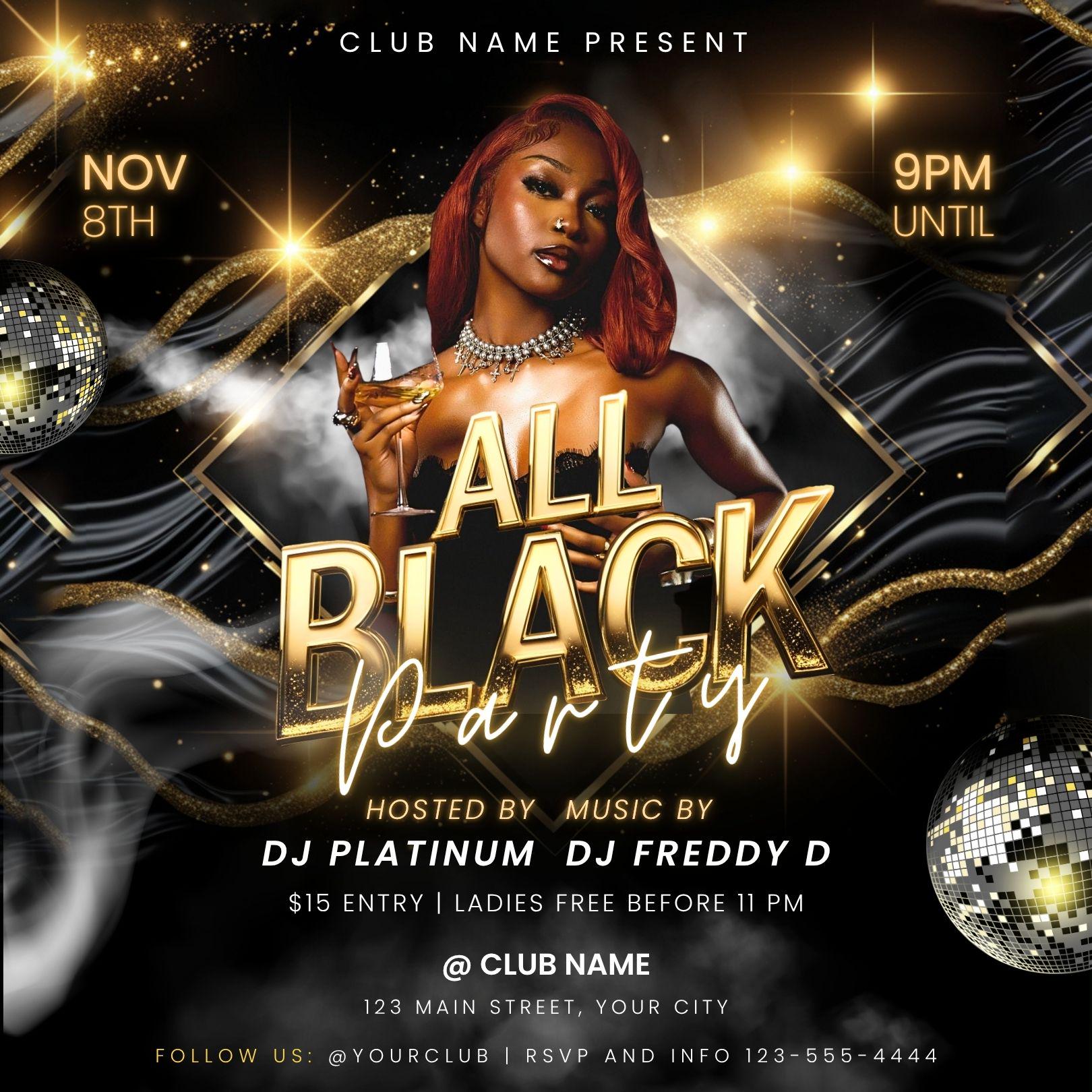 🖤✨ Turn up the vibe with this All Black Party Flyer Template! Perfect for clubs, DJs, promoters, and event hosts who want to create a bold and stylish flyer that captures attention instantly.
