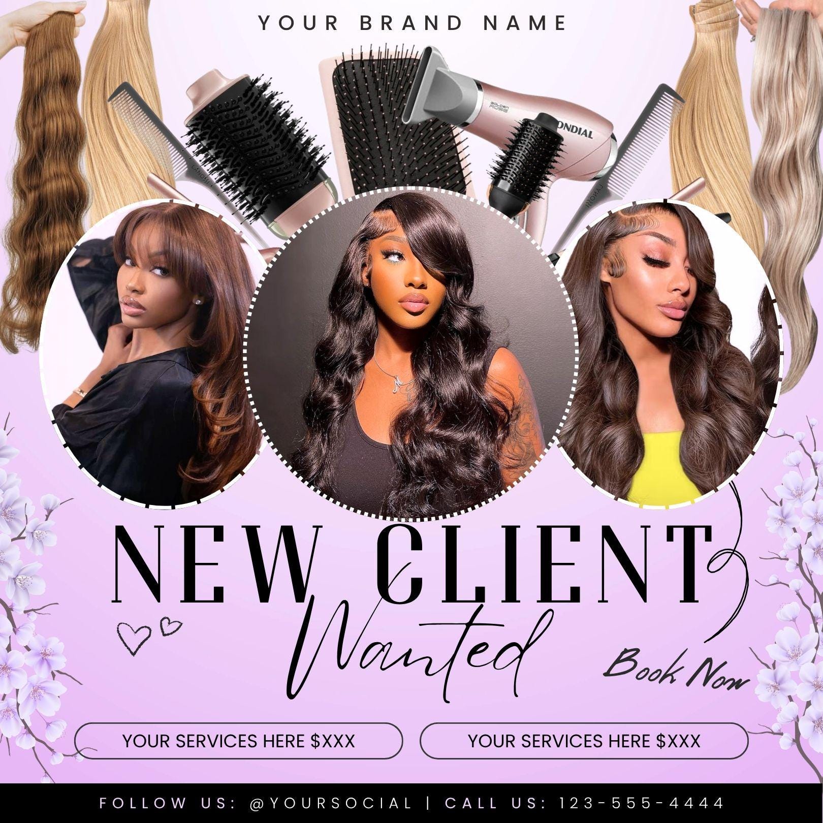 ๐พโจ Attract new clients and elevate your salon brand with this Editable New Client Flyer Template! Perfect for hairstylists, lash techs, and beauty pros who want to promote their services and grow their client base effortlessly.