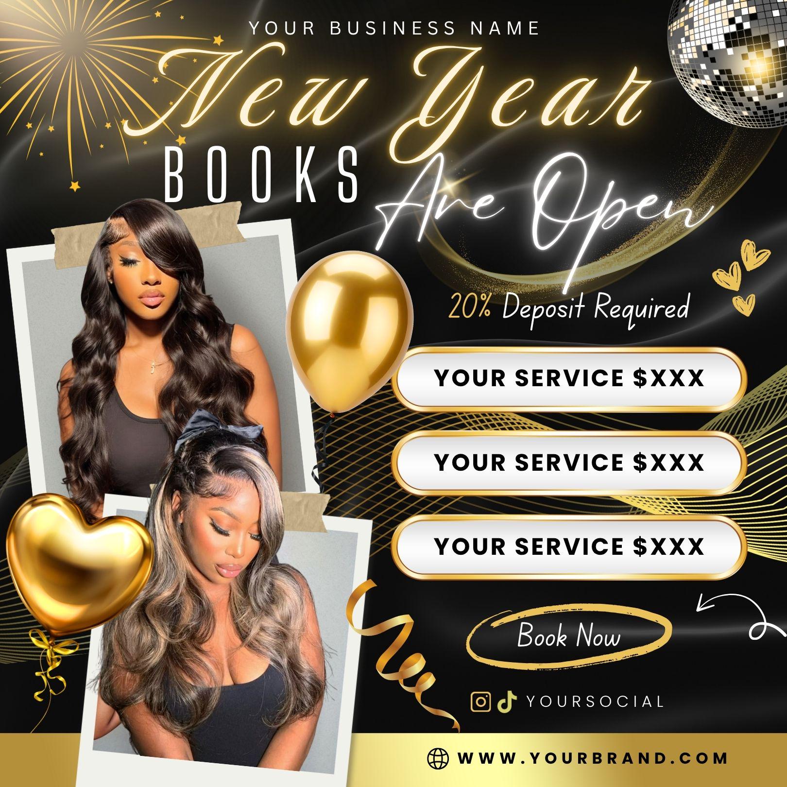 ✨ Kick off the new year with style and professionalism using this New Year Booking Flyer Template! Perfect for hairstylists, salons, lash techs, nail artists, and beauty entrepreneurs who want to attract new clients and showcase their services. This editable Canva flyer is bold, festive, and 100% customizable.