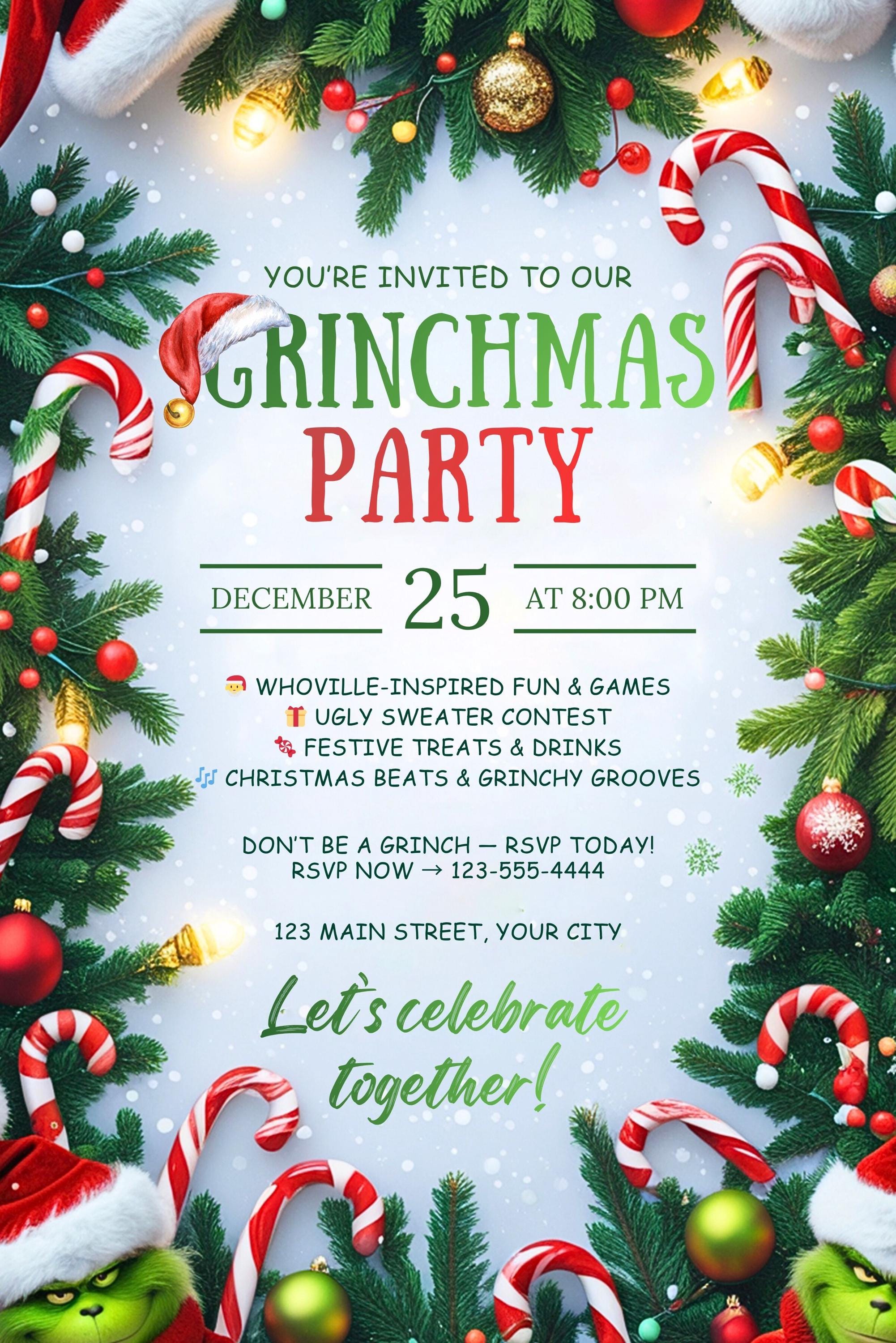 Grinchmas Party Flyer β Editable Canva Template | Christmas Party Invitation | Digital Download