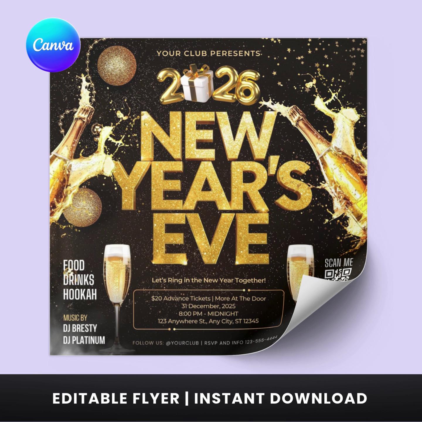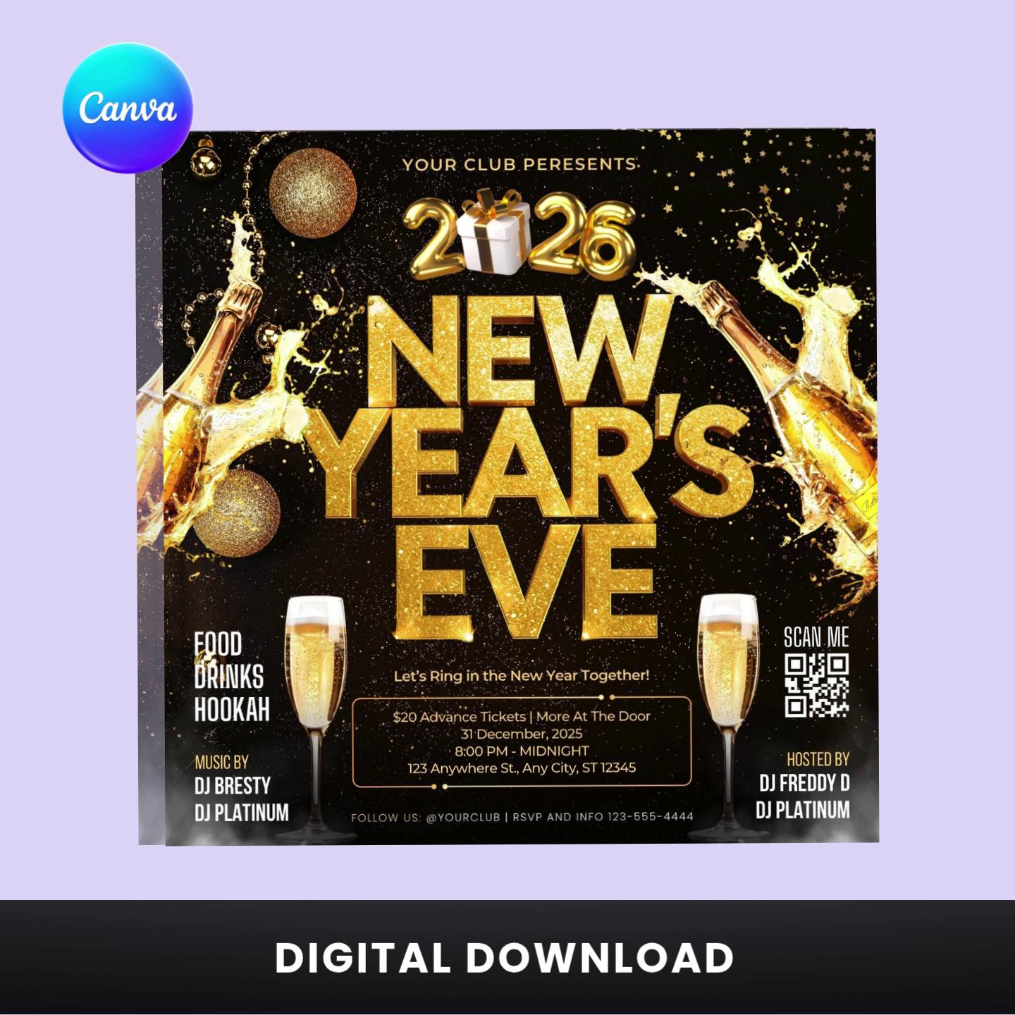 New Year’s Eve Flyer 2026 – Editable Canva Template | Champagne Party Flyer | Digital Download