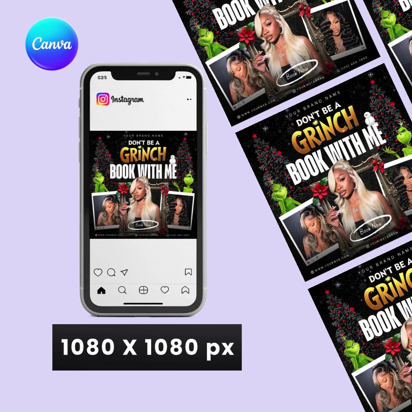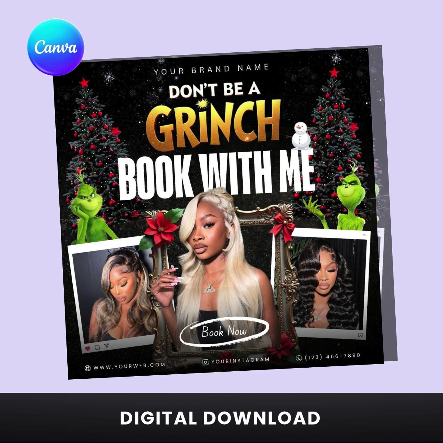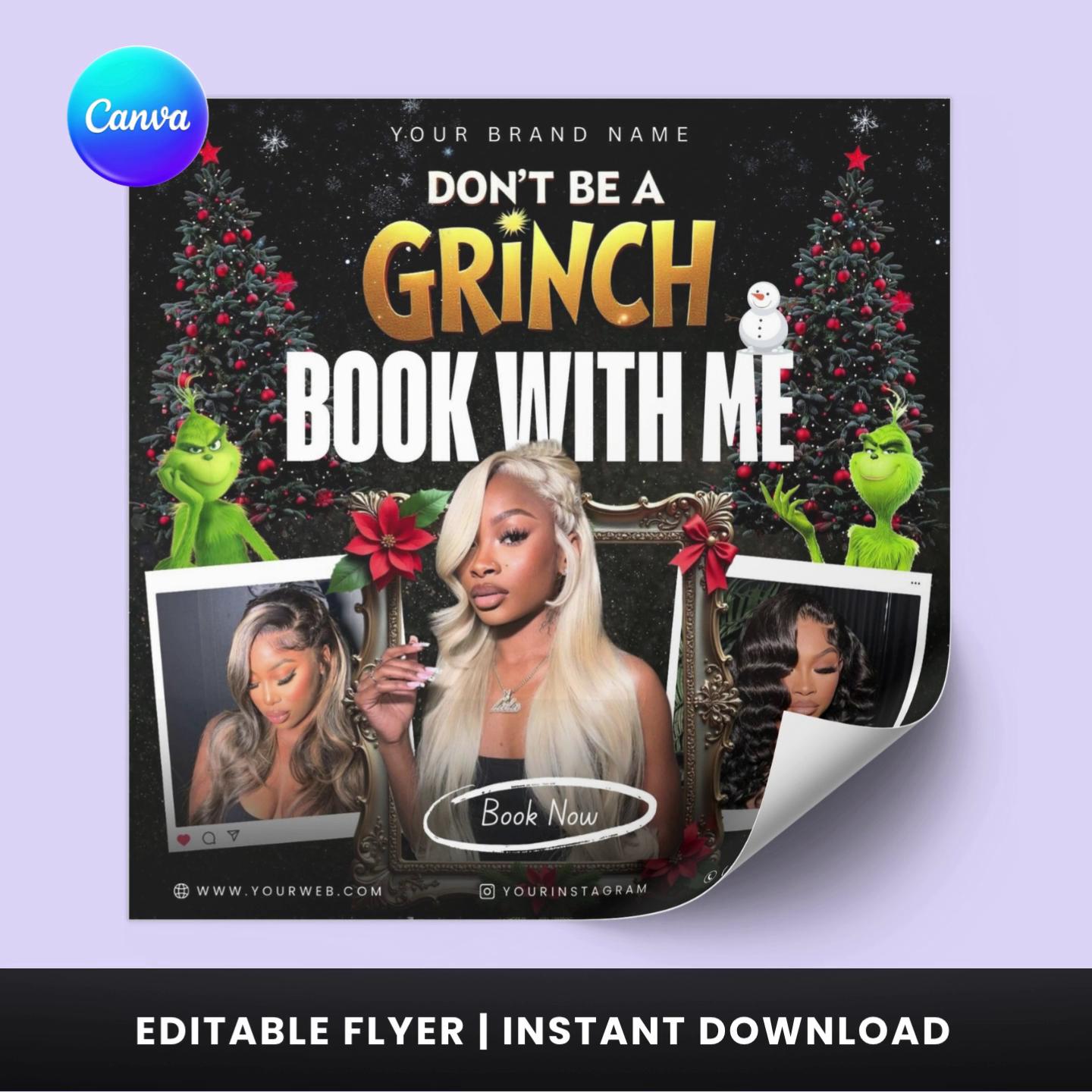 Don’t Be a Grinch Flyer – Editable Canva Template | Hair Stylist & Beauty Salon Promo | Digital Download