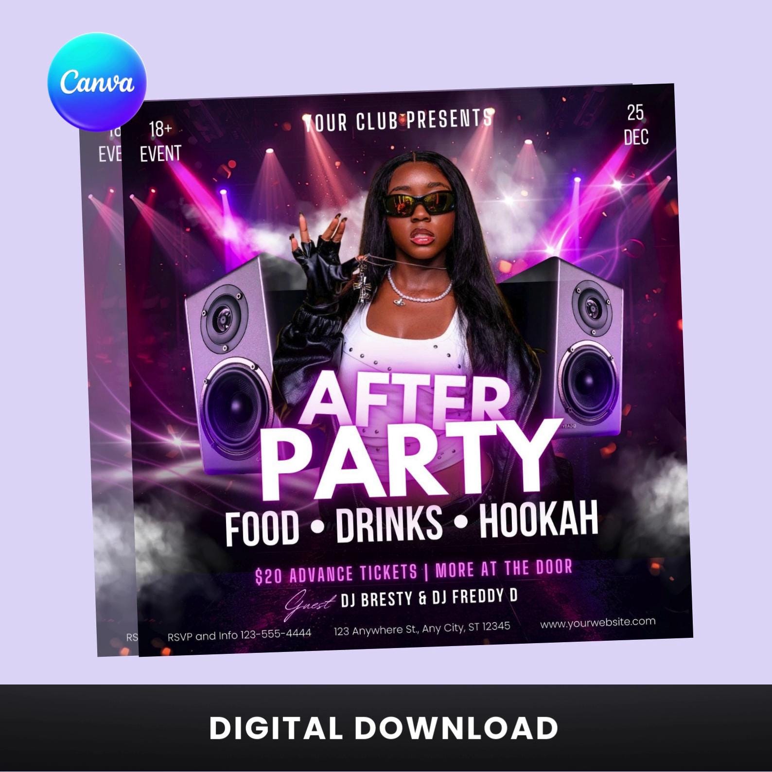 After Party Flyer – Editable Canva Template | DJ Night | Digital Download