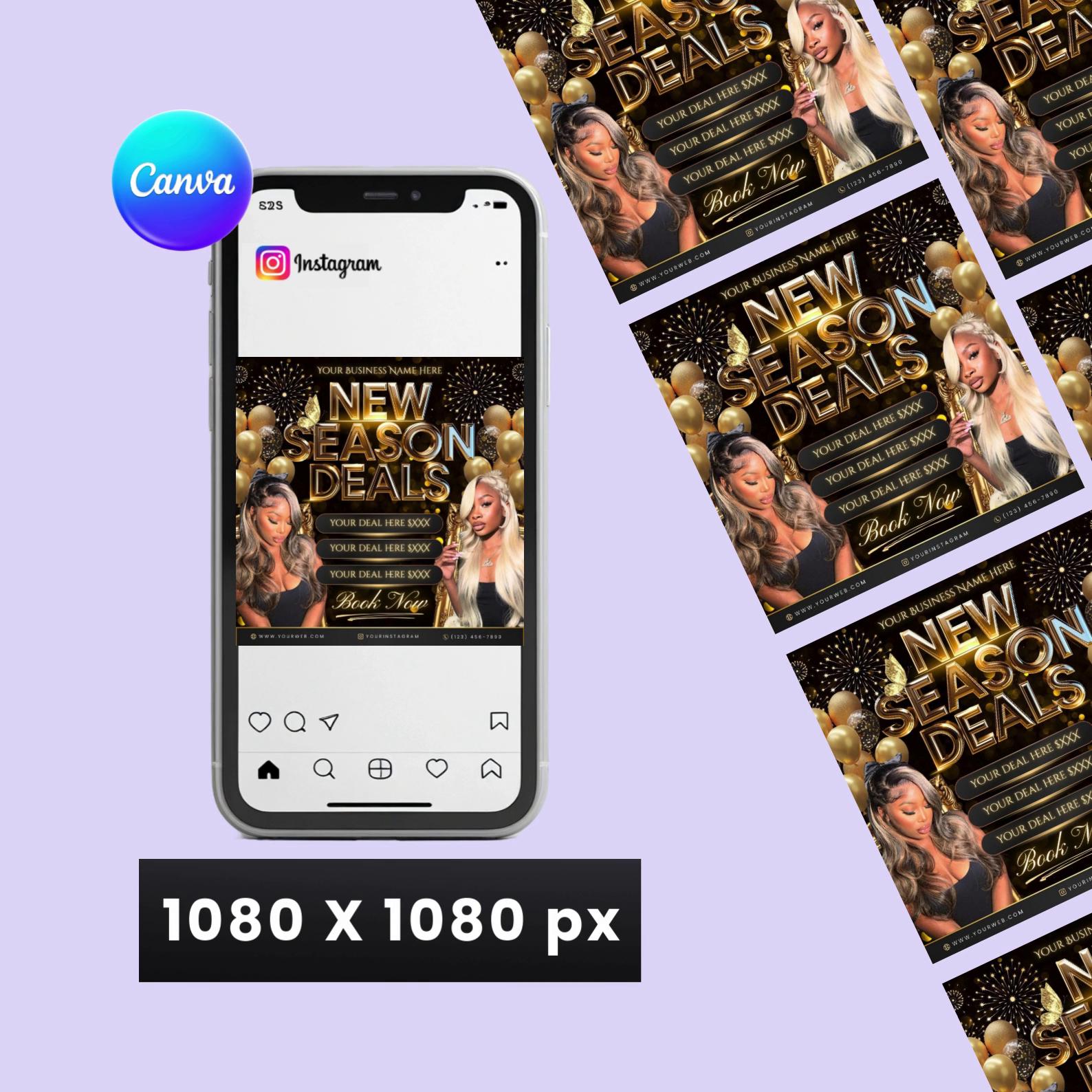 This editable Canva flyer is designed for hairstylists, lash artists, nail techs, and beauty professionals who want to promote their New Year or January deals and secure fresh bookings for the new season. With its glamorous gold-and-black theme, you can easily customize your services, prices, and branding. Share online or print for your salon!