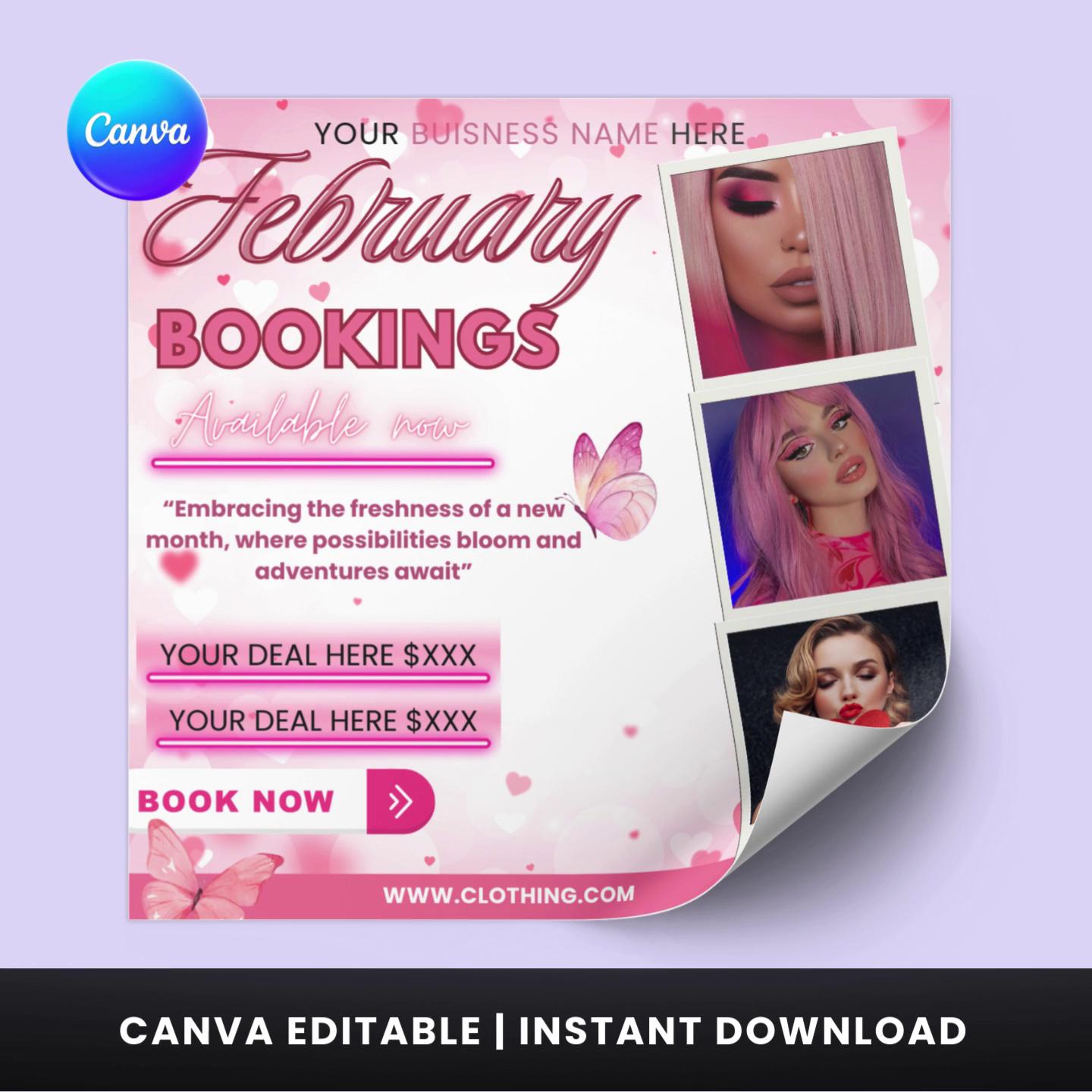 February Booking Flyer Canva Template | Monthly Booking Flyer | February Appointments Flyer | Editable Canva Poster