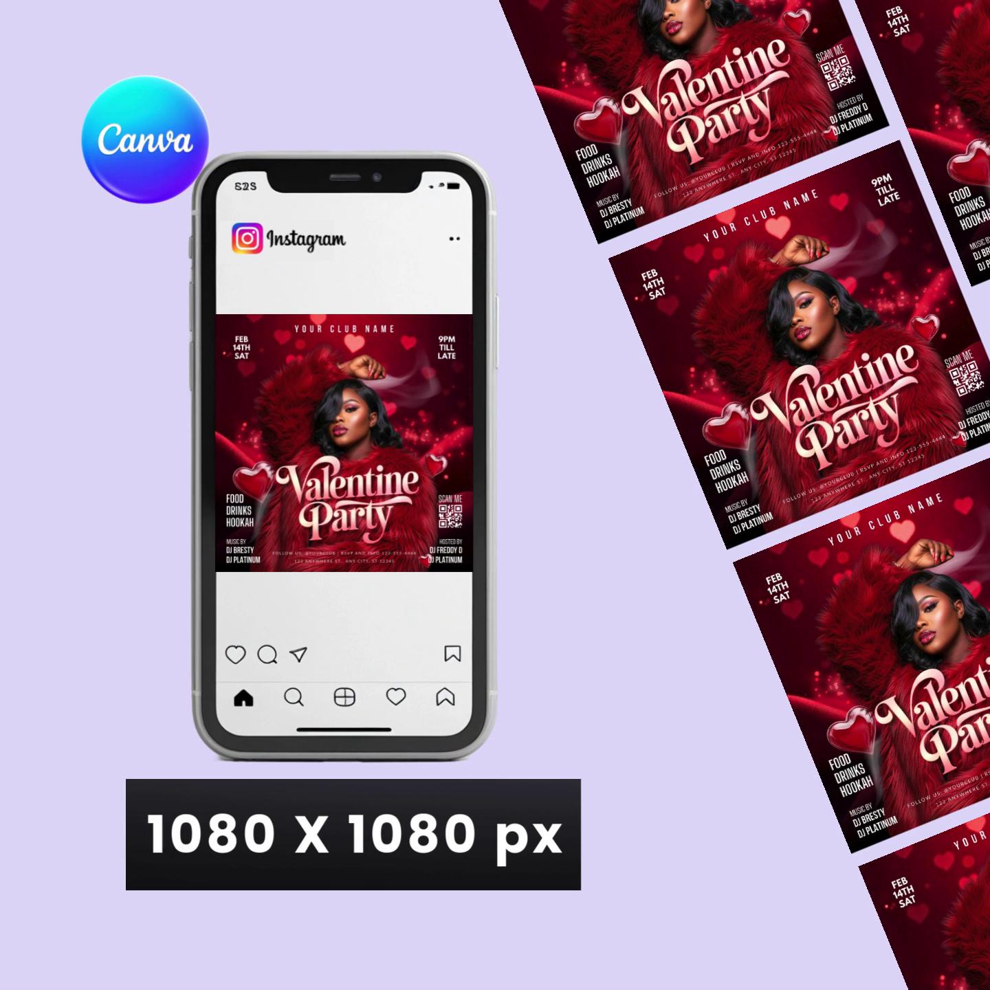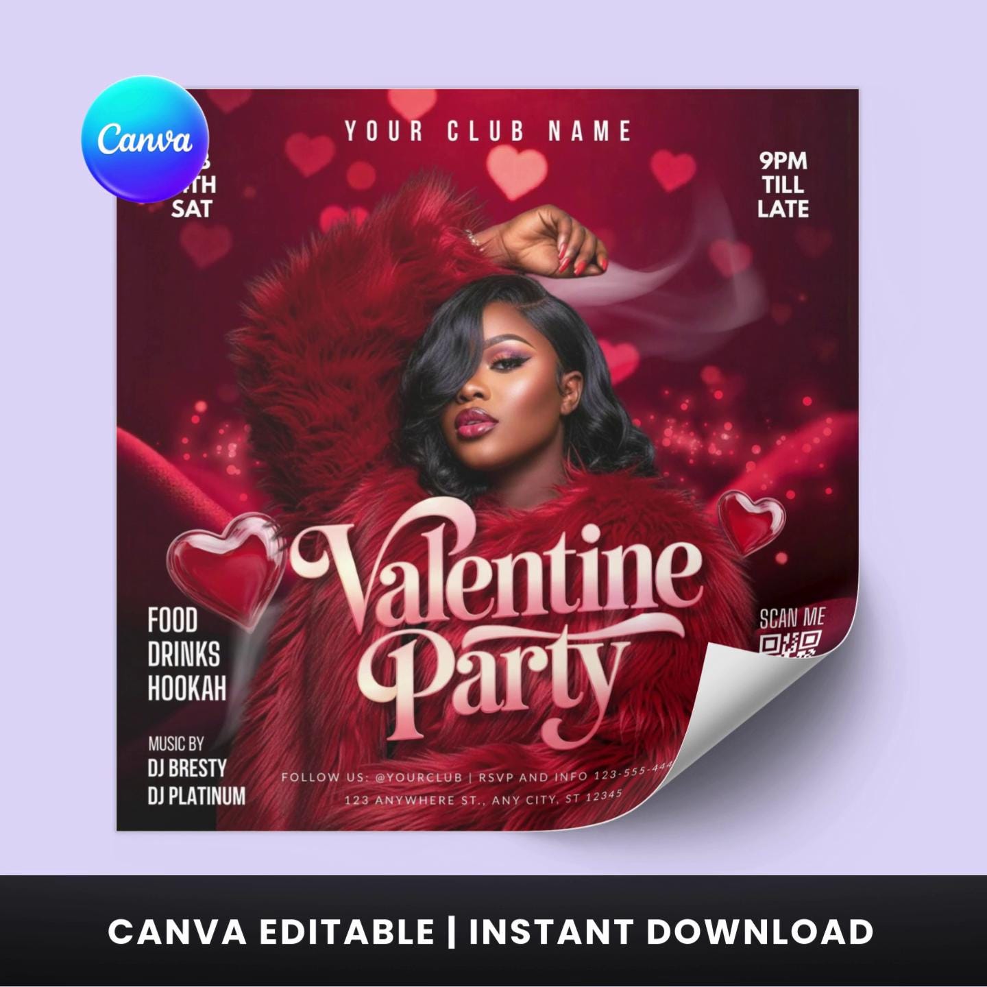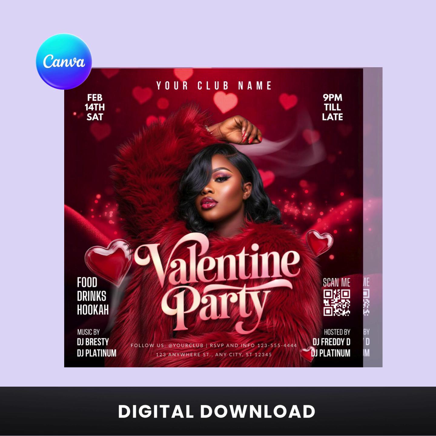Valentine's Day Party Flyer Template, Nightclub Event, Editable Canva Design (Digital Download)