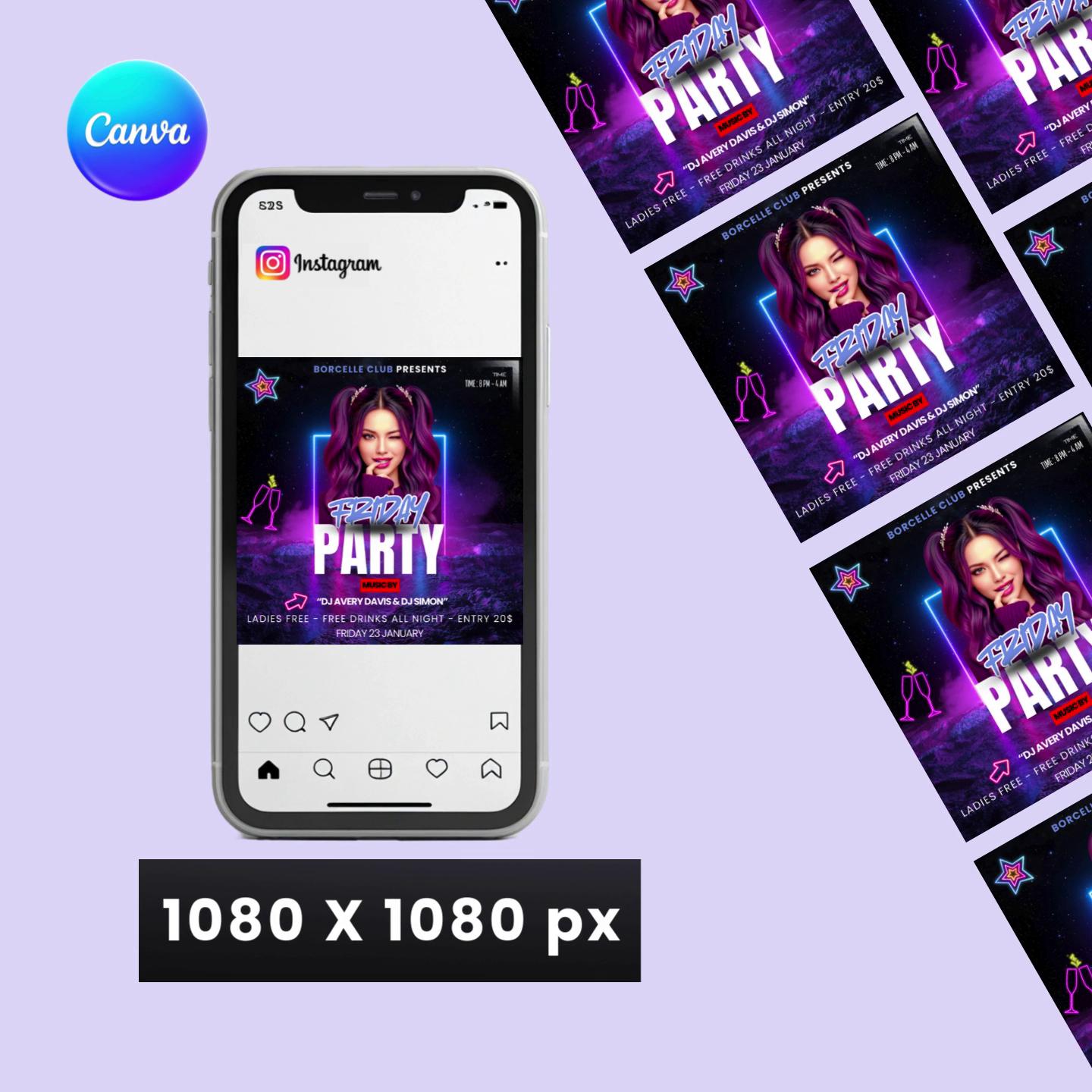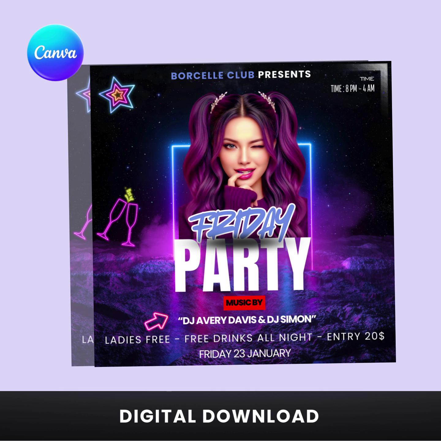 • 1 Canva-editable Friday party flyer