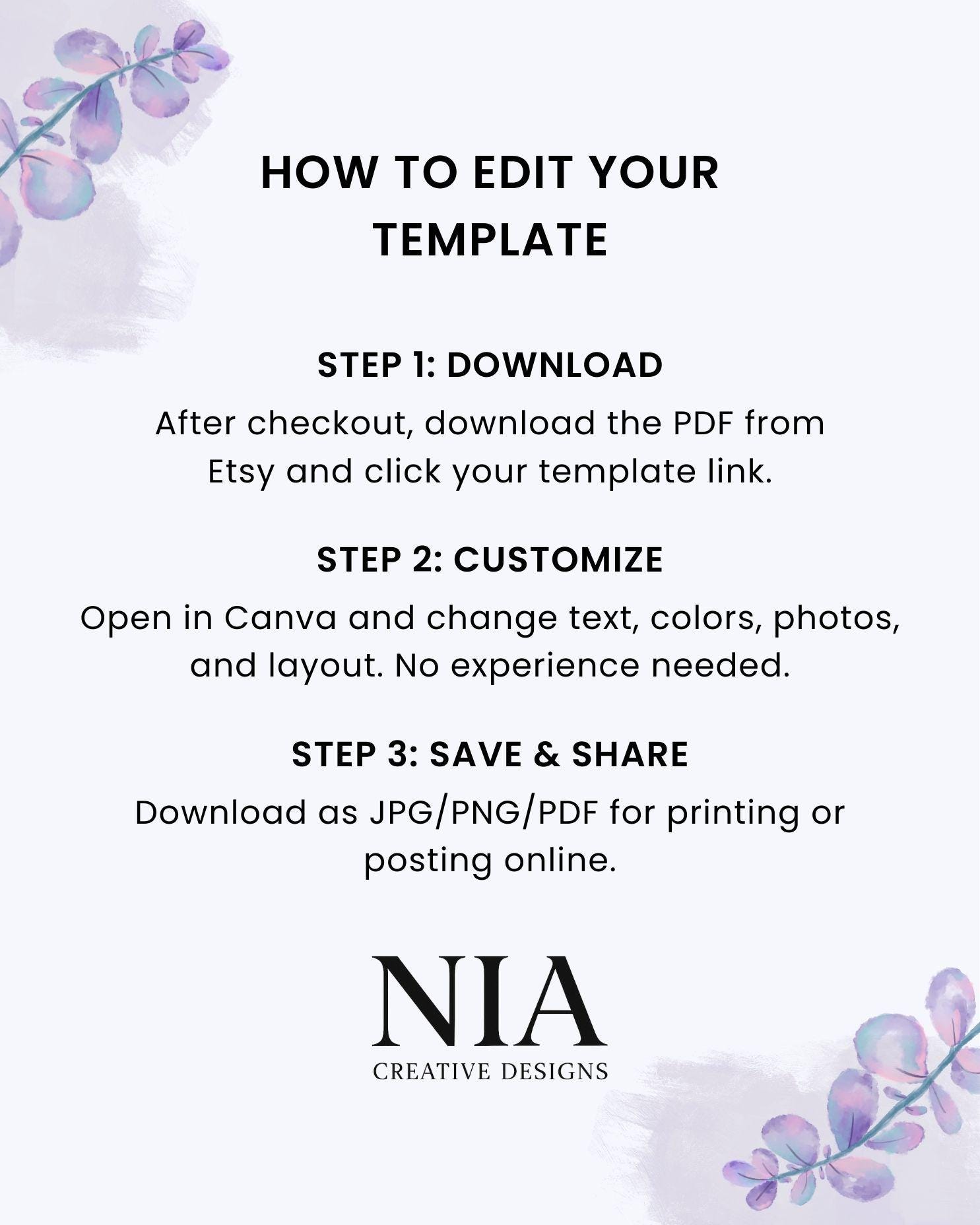 The fresh green, spring-inspired design is perfect for seasonal promotions and is fully editable in Canva, making it easy to customize your photos, text, services, pricing, and branding — no design experience required.