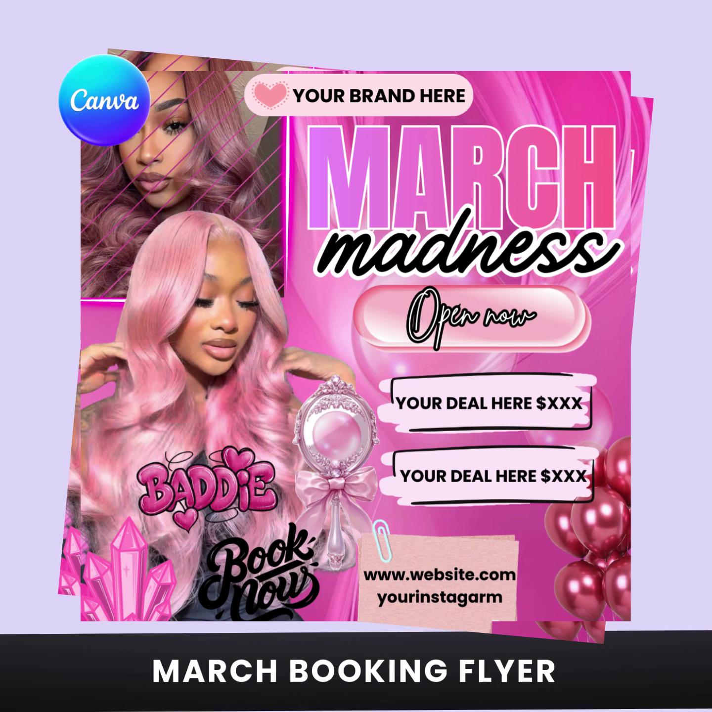 March Madness Booking Flyer | Pink Baddie Glam Canva Template (Digital Download)