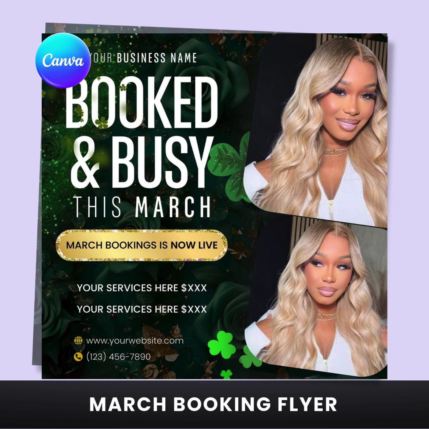 March Booking St. Patrick's Day Hair & Lash Booking Flyer | DIY Canva Editable (Digital Download)