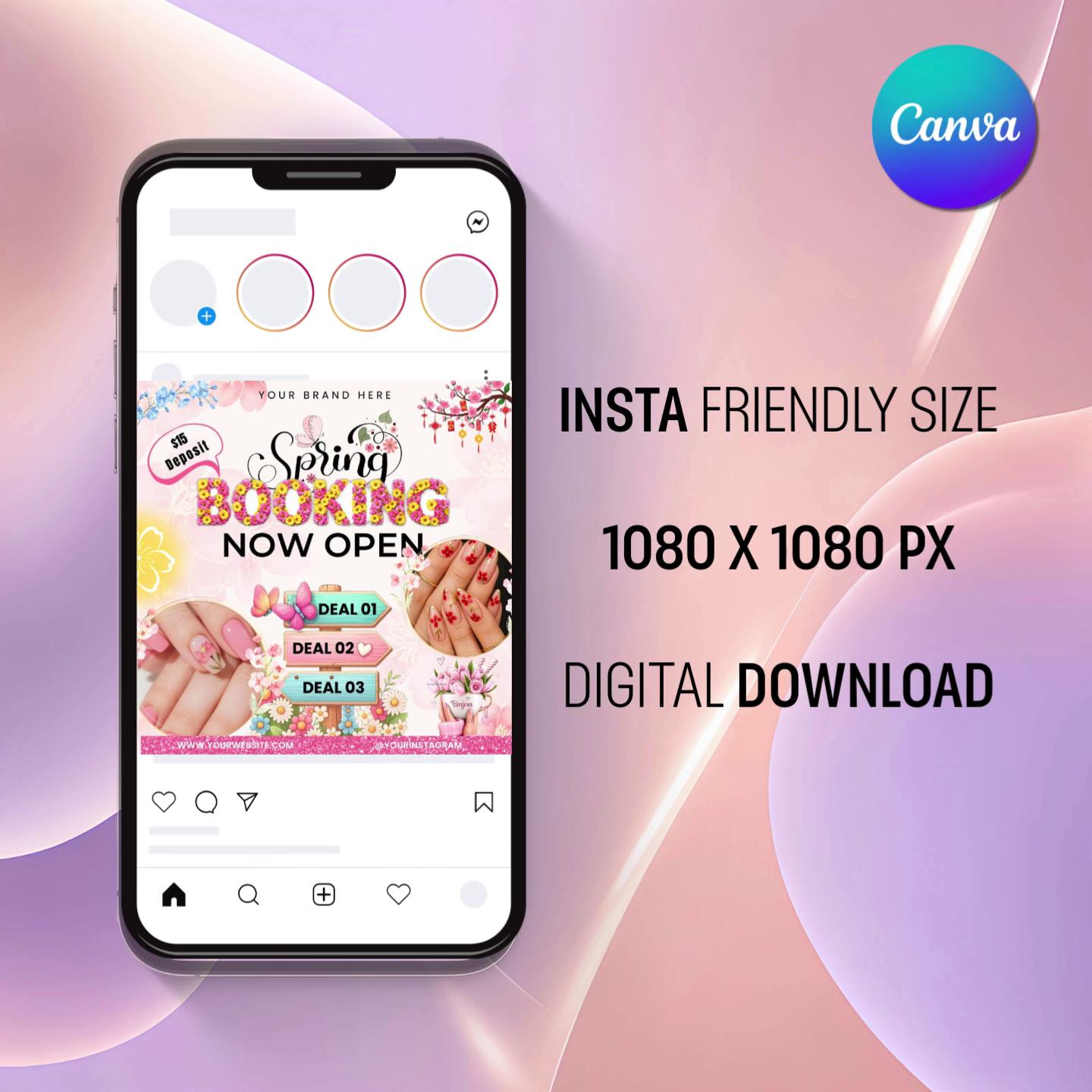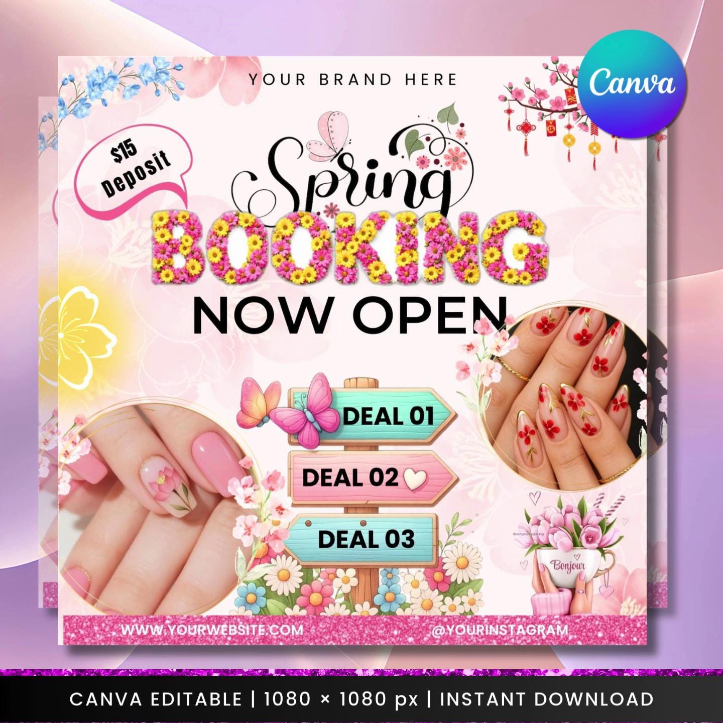 Refresh your social media feed with a soft, floral aesthetic that captures the essence of the season. This "Spring Booking" template is designed specifically for beauty professionals who want to showcase their new seasonal deals and fill their schedules with ease.