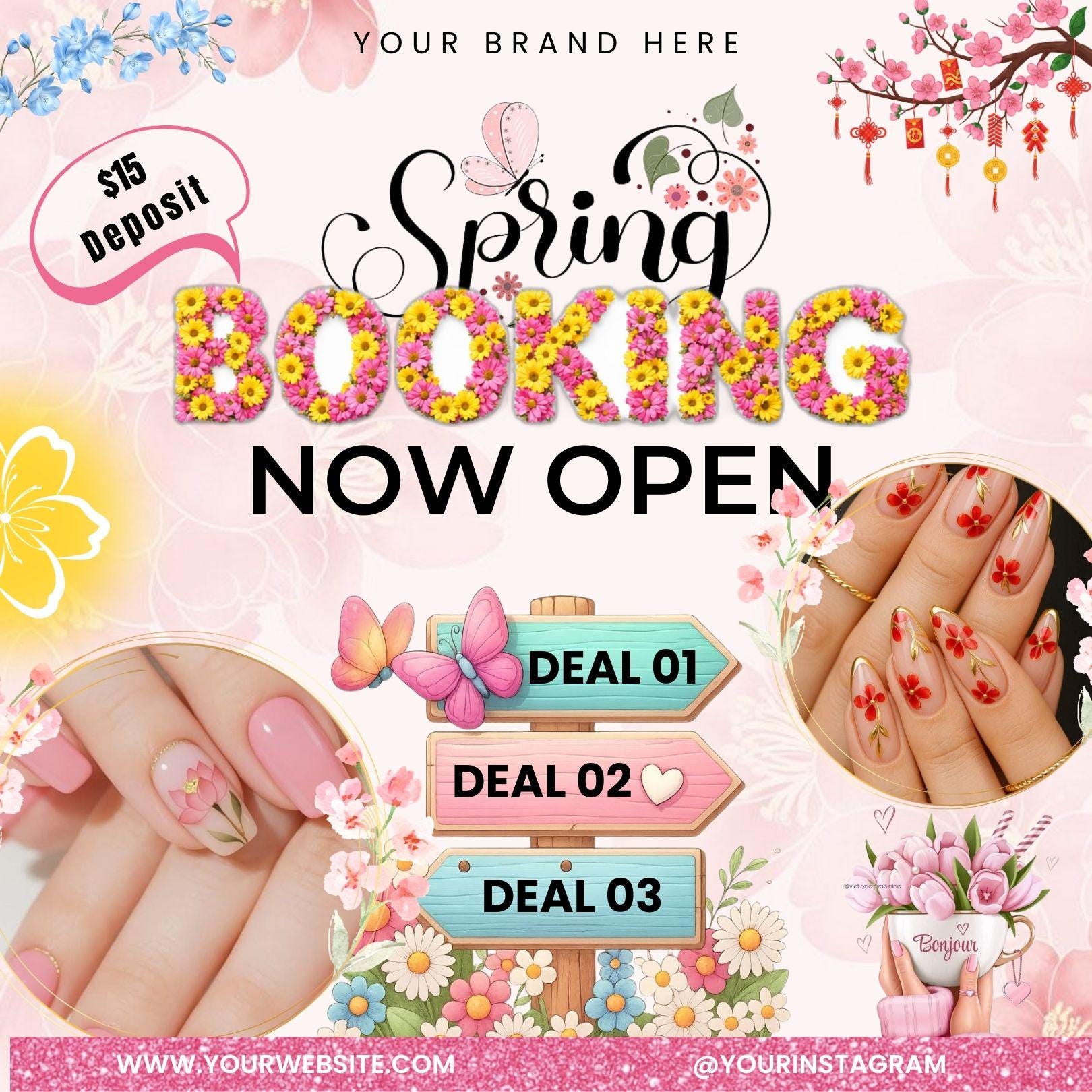 Customize your "Spring Booking" details and add your own beautiful service photos.